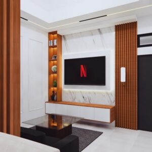 Kami menawarkan berbagai opsi finishing seperti panel WPC, PVC, gypsum, hingga kombinasi dekoratif modern, lengkap dengan sistem pencahayaan tersembunyi (hidden lamp) agar ruang terlihat lebih eksklusif.